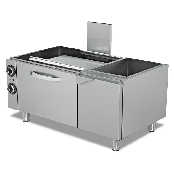 - 2xGN 2/1 tepsi kapasiteli paslanmaz çelik fırın iç haznesi.