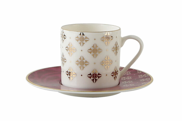 Evoke Desen4 Fuşya Tabaklı Kahve Fincanı 90cc